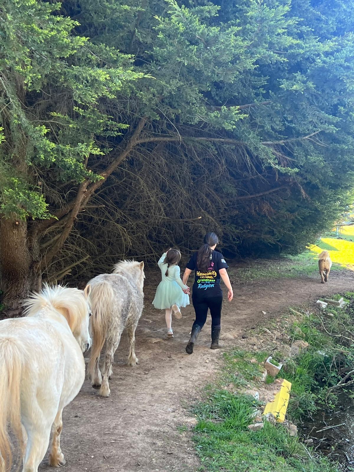 The practitioner invites the client to explore and build their own resources, referring to inner and outer supports, grounding and body scan exercises. With the help of the horses presence, the client can: observe the horse/s, meet the horse/s at liberty, meet the horse/s inside the yard, touching, grooming, haltering, leading. The session can take place inside our nature-immersed pod, in the round yard or at liberty. We can involve Mia or Hannah or both, depending on the client's and horse’s needs.